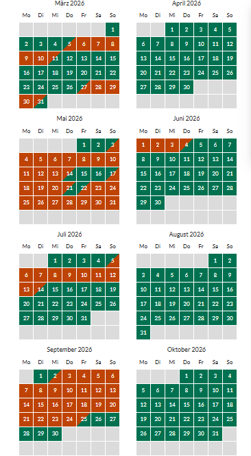 Ausnahmen: - Ferien NRW , Juni - August & Feier-/Brückentage/Karneval: 3 Nächte