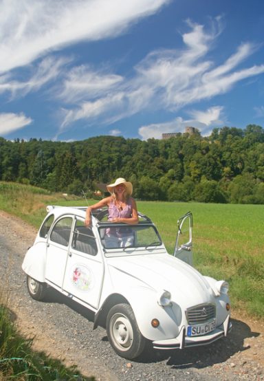 Begleiten Sie mich, wenn ich von Frühjahr bis Herbst mein Kult-Auto Citroën 2 CV 6 ("Ente") starte, um durchs idyllische Ländchen zu schaukeln - natürlich abseits stark befahrener Straßen.